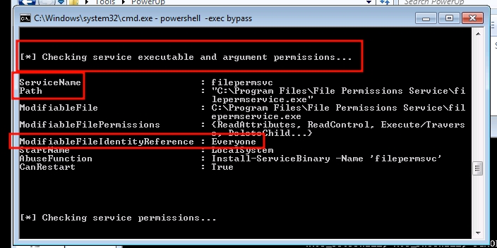 accesschk64.exe -wvu "C:\Program Files\File Permissions Service"Compile, upload the malicious exe, replacing the old executable and start the service